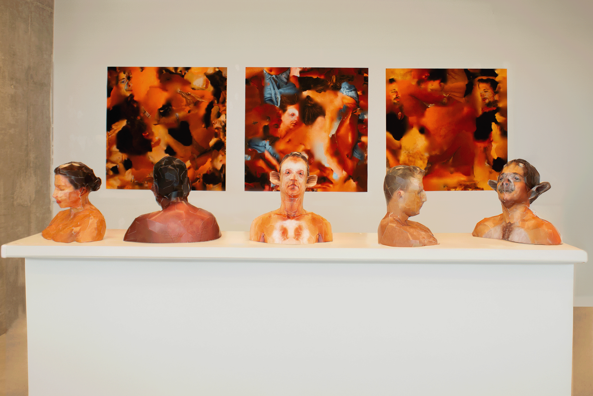 Homonovus investigates how digital tools can reshape the idea of the human body by blending it with non-human characteristics. This series of sculptures questions the stability of biological identity in a digital age, presenting a “New Man” that exists between the organic and the synthetic.